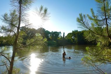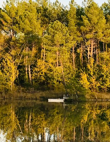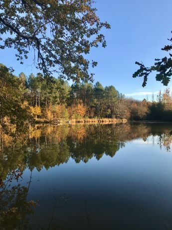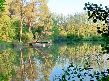 Les bords peu profonds de l’étang vous permettent de patauger doucement avant de plonger dans les eaux les plus profondes jusqu'à 4m. Il y a un barque a votre disposition amarré au ponton orientée ouest, l'endroit idéal pour regarder le coucher du soleil.