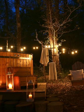 Les cabanes Skylark et Elvensong disposent chacune d'un jacuzzi au feu de bois dans leur jardin.