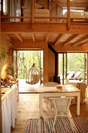 La magie de la chambre à l’étage est de se trouver dans un grand lit parmi les plus hautes branches - les étoiles se rapprochent et les reflets du clair de lune sur l’étang sont resplendissant. Pour une détente complète, allumez le luxueux jacuzzi du jardin forestier, plongez dans les eaux revigorante et laissez-vous envelopper par la grande tranquillité et la beauté vibrante de la nature.