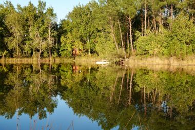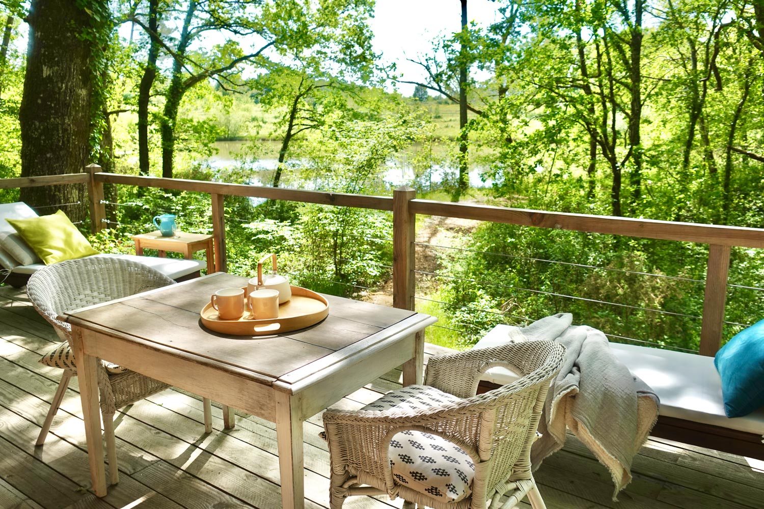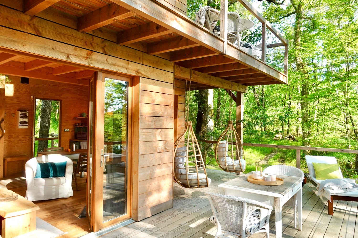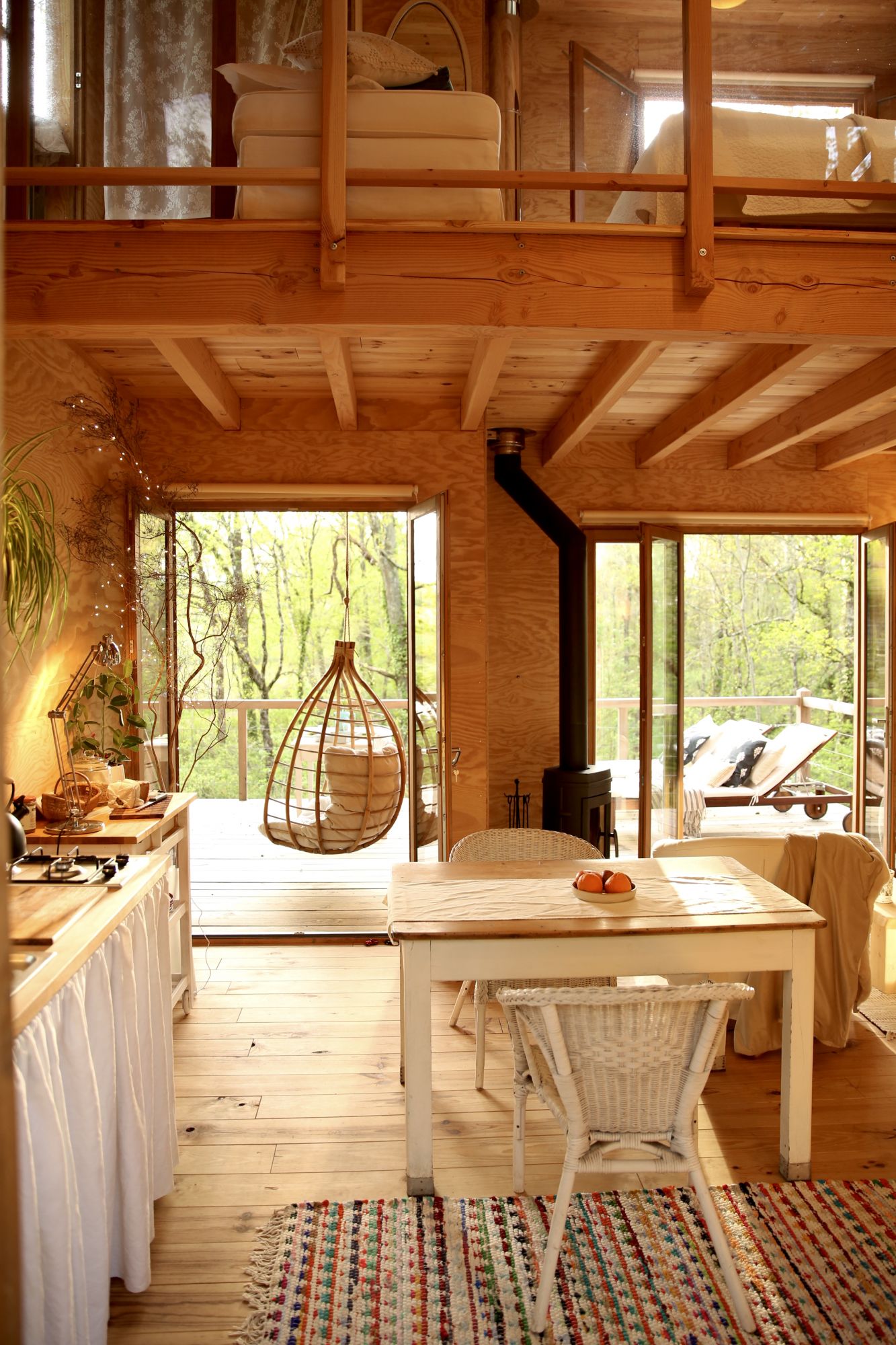 Skylark se trouve à la lisière de la forêt, surplombant le grand étang de Terre et Toi. S'étirant vers la cime des arbres, j'ai conçu la cabane sur deux étages avec 11 fenêtres qui donnent sur la forêt et sur les eaux scintillantes de l’étang. Les lignes épurées et contemporaines offrent des intérieurs lumineux qui s'ouvrent sur des grandes terrasses où vous effleurez les chênes majestueux qui vous entourent.